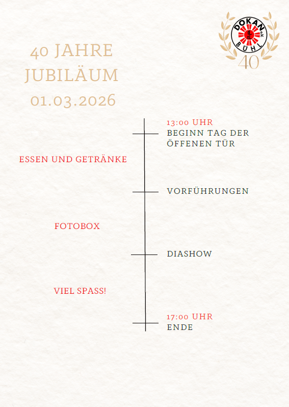 Seit 40 Jahren steht das Budozentrum Dokan e.V. für Kampfkunst, Gemeinschaft, Respekt und Leidenschaft. Das möchten wir mit euch feiern!